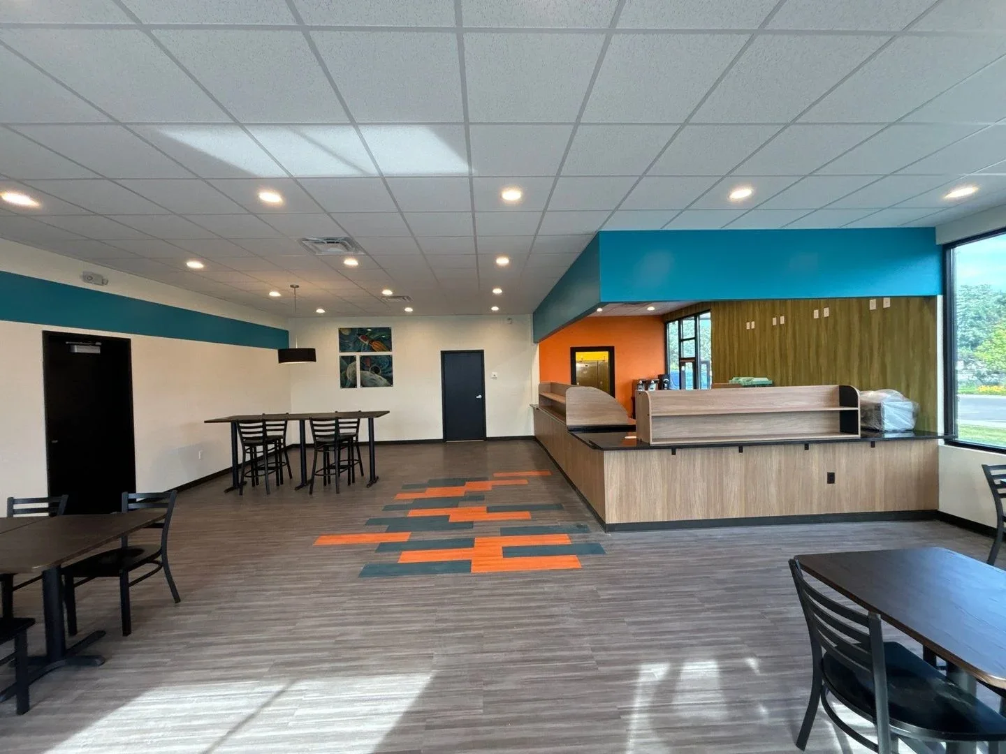 This project was a full tenant improvement for a Biggby Coffee location in Fort Wayne. The space was built out to meet the brand’s design and operational requirements, creating a comfortable environment for both customers and staff.