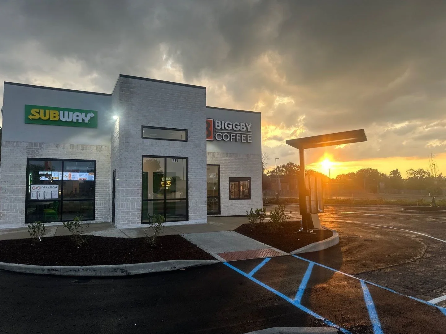 A former Captain D’s restaurant was completely transformed into a dual-brand Biggby Coffee and Subway location with two independent drive-throughs. This large-scale redevelopment combined modern design, upgraded systems, and strategic site improvements to create a highly functional and visually striking retail space.
