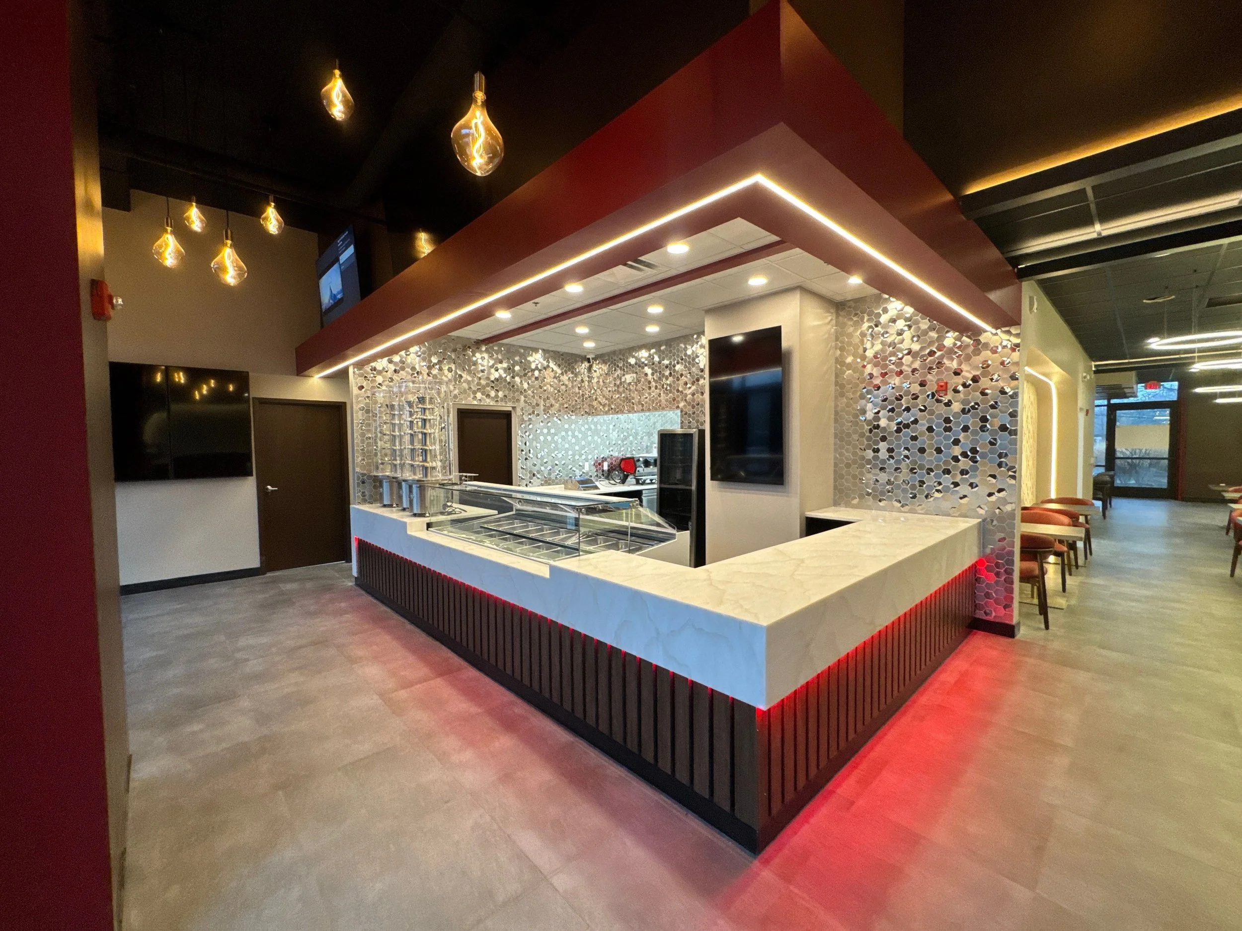 This design-build project marked Melt n Dip’s second Indiana store, enhancing the brand’s footprint with a fully modernized interior. Oak + Stone managed every aspect, from mechanical upgrades to in-house fabricated finishes, creating a polished and cohesive environment.