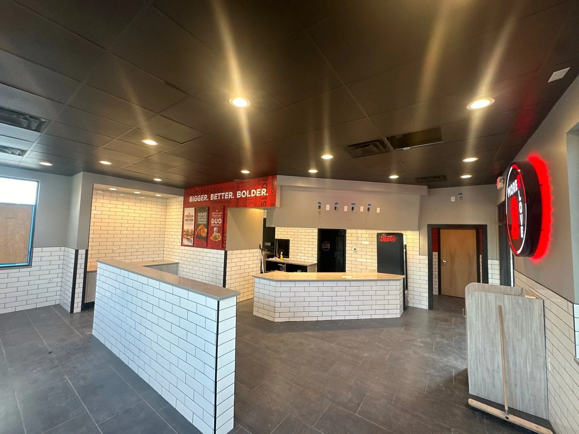 To maximize the value of the existing site, new drive-through equipment was installed, enhancing the secondary use of the building’s original drive-through configuration. This project highlights Oak & Stone Construction’s expertise in adaptive reuse and restaurant build-outs, delivering efficient, market-ready spaces that help expanding brands launch successfully in new regions.